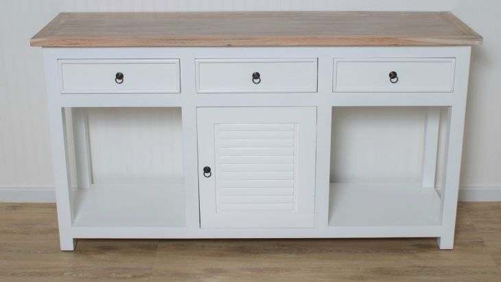 Stunning combination of two tone teak wash top and white painted mahogany console. Perfect addition to anyone that loves that elegant, relaxed coastal vibe.