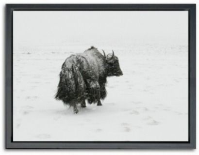 Modern and Stylish black and white framed print with ever popular snow yak.